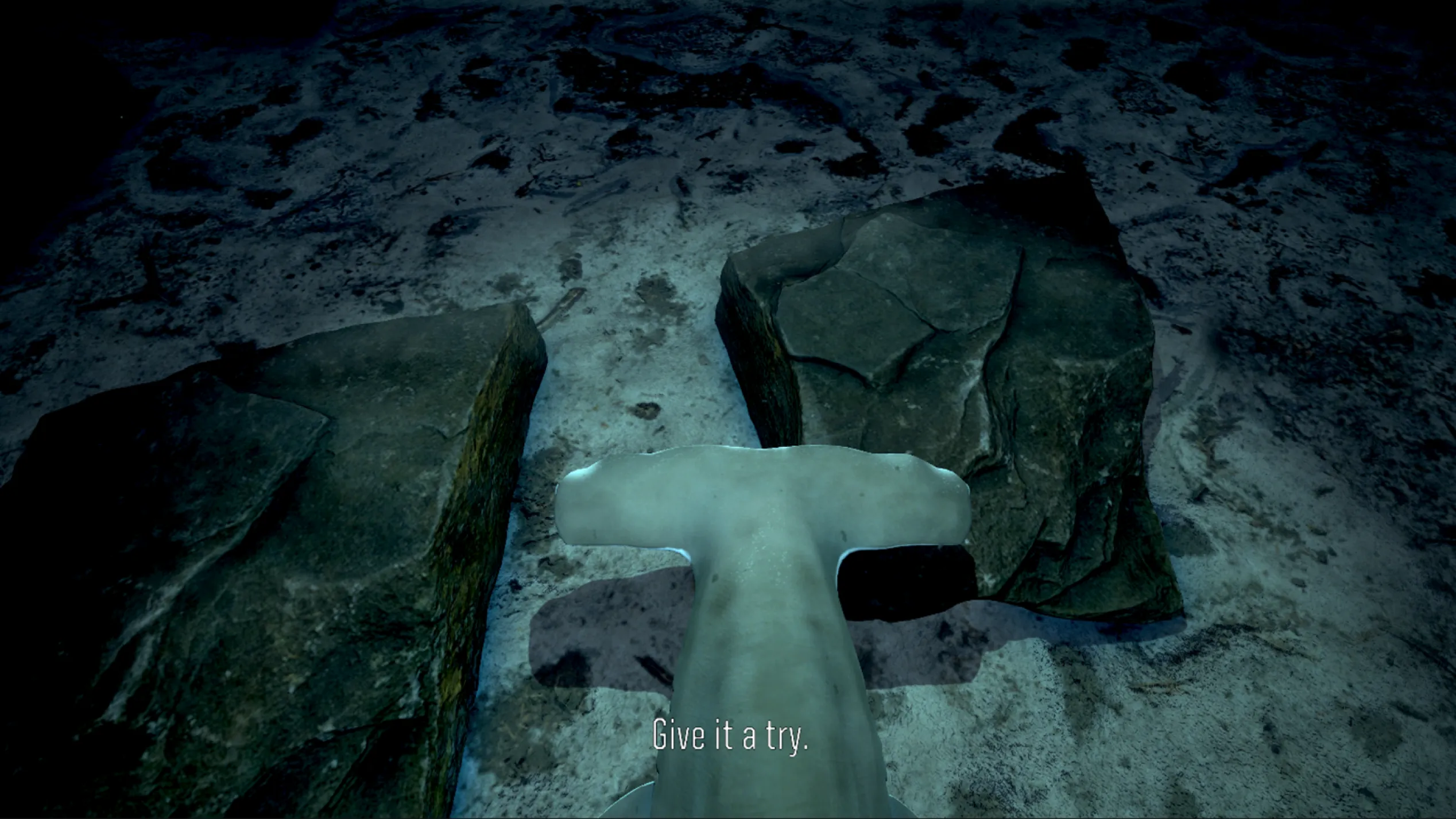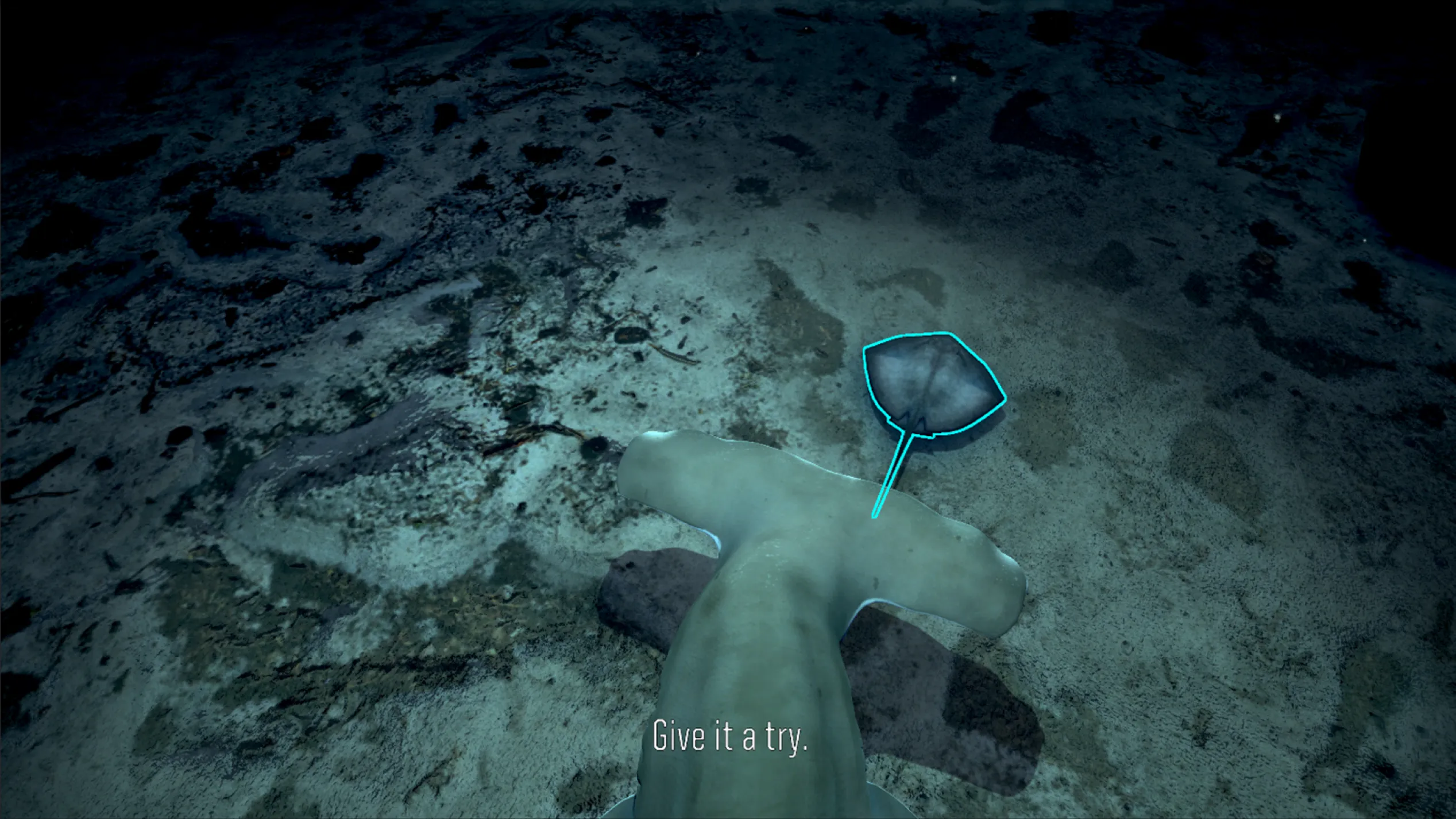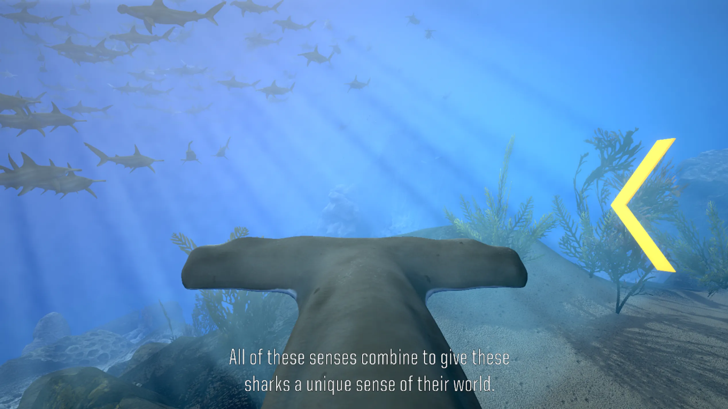 Players steer a hammerhead shark through an ocean environment and hunt